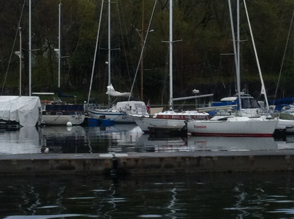 Da vi forlot Åsgarsdtrand, var det i mye vind og ikke noe jeg likte å være med på, med skumtopper på sjøen og langt fra land. Jeg fikk beskjed om å legge båten «opp mot vinden» mens Bård skal styre med seilene. Men det er jammen ikke lett å vite hvordan jeg gjør det når jeg ikke vet hvor vinden kommer fra og hvordan jeg skal rore. Det gikk som det måtte gå, bommen svingte fra den ene siden til den andre, Bård ropte og jeg var redd for han skulle falle på sjøen og i det hele tatt. Et av de vondeste minnene fra turen. Kaldt var det også. Og vått. Bård satte opp en «spree» og en «jib preventer», i følge reiseboka mi, som jeg nettopp fant. Puh!